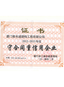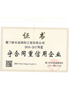 保灃1號廠房建設(shè)工程廈門市結(jié)構(gòu)優(yōu)質(zhì)工程證書