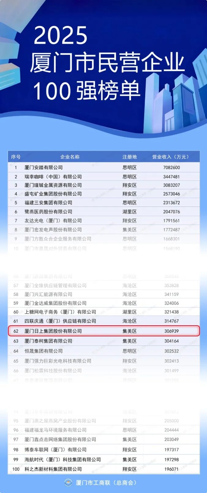 2025廈門(mén)市民營(yíng)企業(yè)100強(qiáng)
